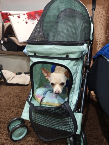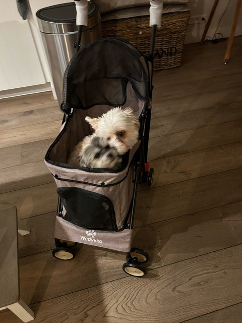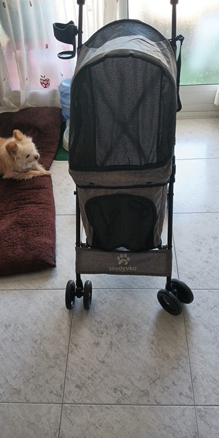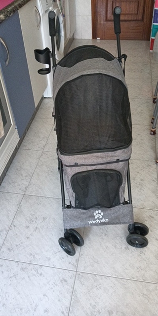El cochecito es muy ligero y va bien para llevártelo con la bicicleta. Tengo 2 perros y les gusta estar en él juntos. ¡Muy bonito!👍🏻❤️