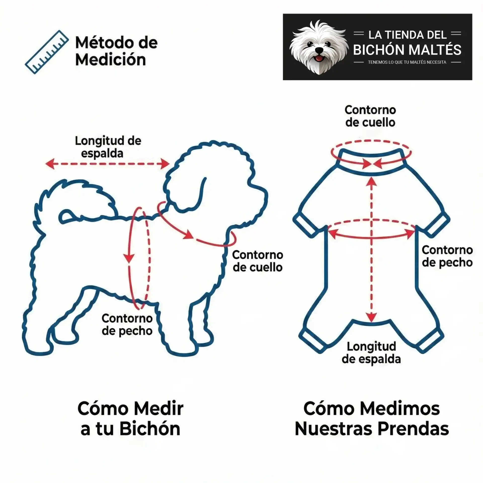 Consejo rápido para acertar con la talla: mide el contorno de pecho en la parte más ancha (justo detrás de las patitas delanteras) y deja 1–2 dedos de holgura. Esa pequeña holgura ayuda a que respire bien, se mueva cómodo y, sobre todo, a que el pelo no se aplaste ni se enrede con el roce.