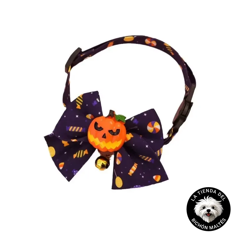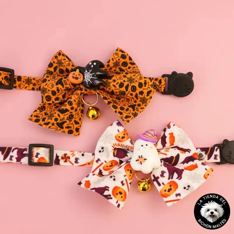 Especificaciones de collar con lazo de Halloween para Bichón Maltés