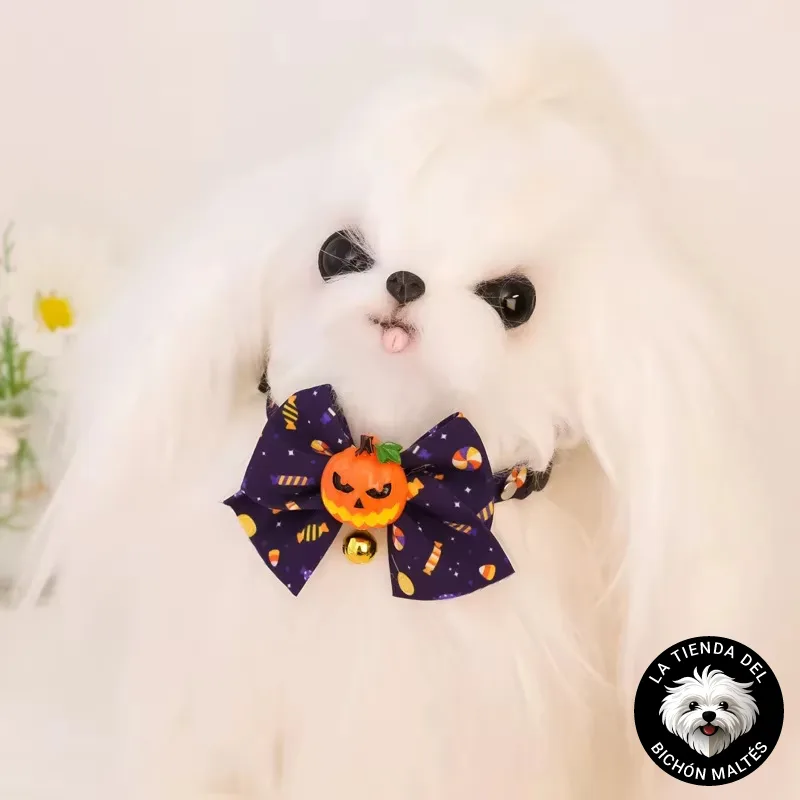 Estética que suma: un accesorio de Halloween para Bichón Maltés que celebra la temporada sin abrumar. Elegante, divertido y listo para brillar.